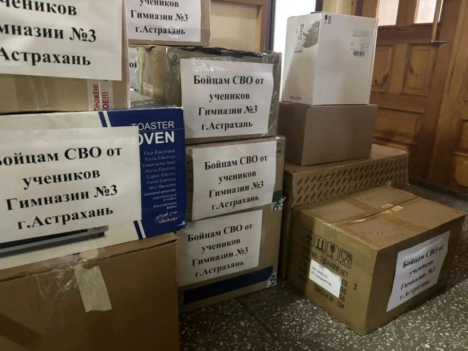 Накануне Дня защитника Отечества школьники и воспитанники детсадов Астрахани подготовили посылки с продуктами, медикаментами и письмами для участников специальной военной операции.