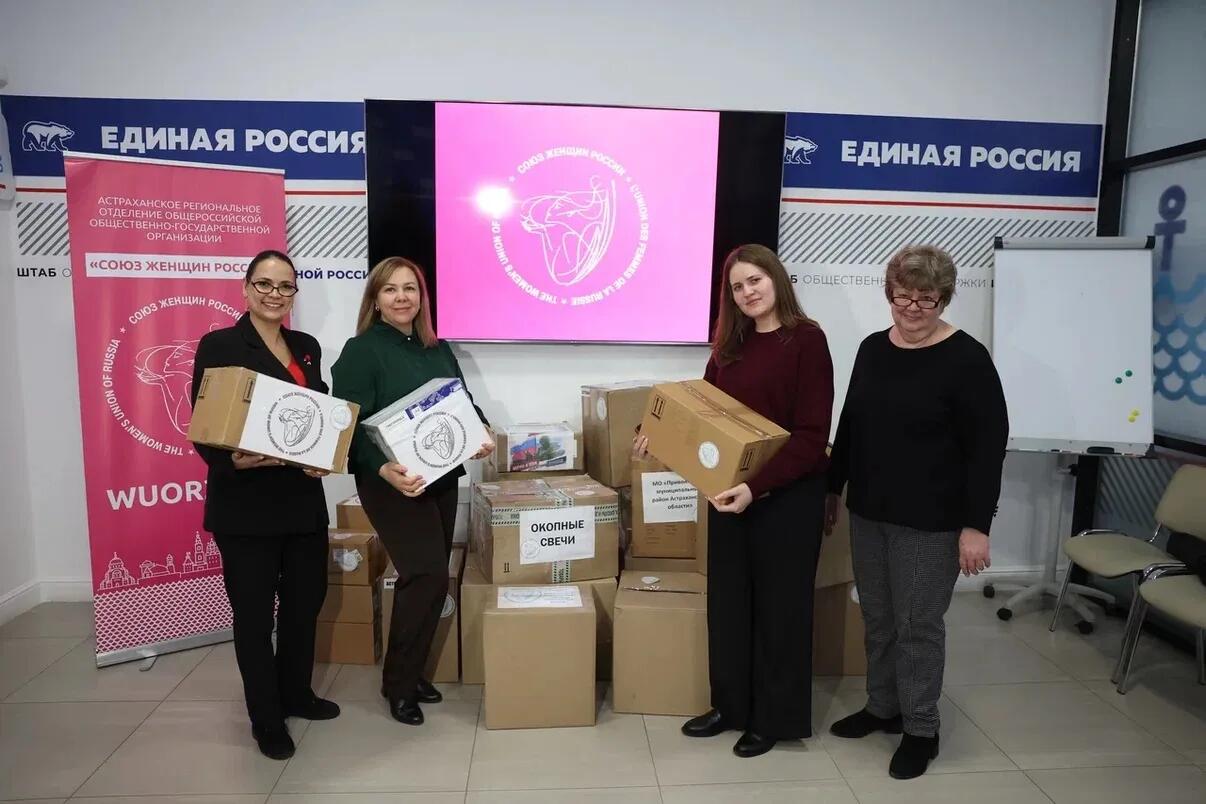 В преддверии Международного женского дня активистки астраханского отделения Союза женщин России собрали и отправили на фронт гуманитарный груз.