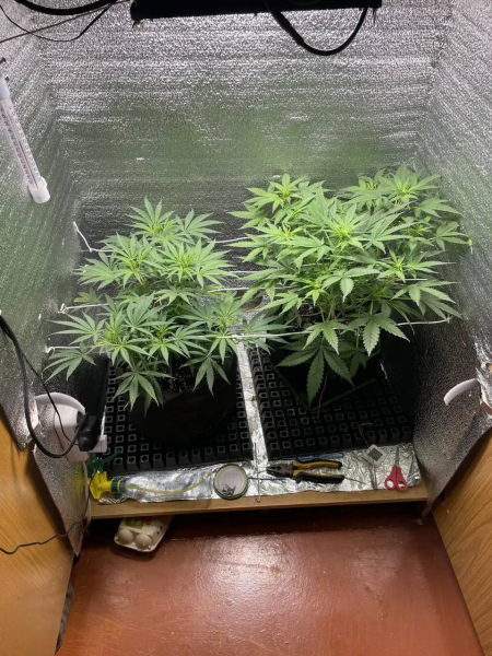 - пластиковый контейнер с двумя горшками растений, от которых исходил запах конопли;